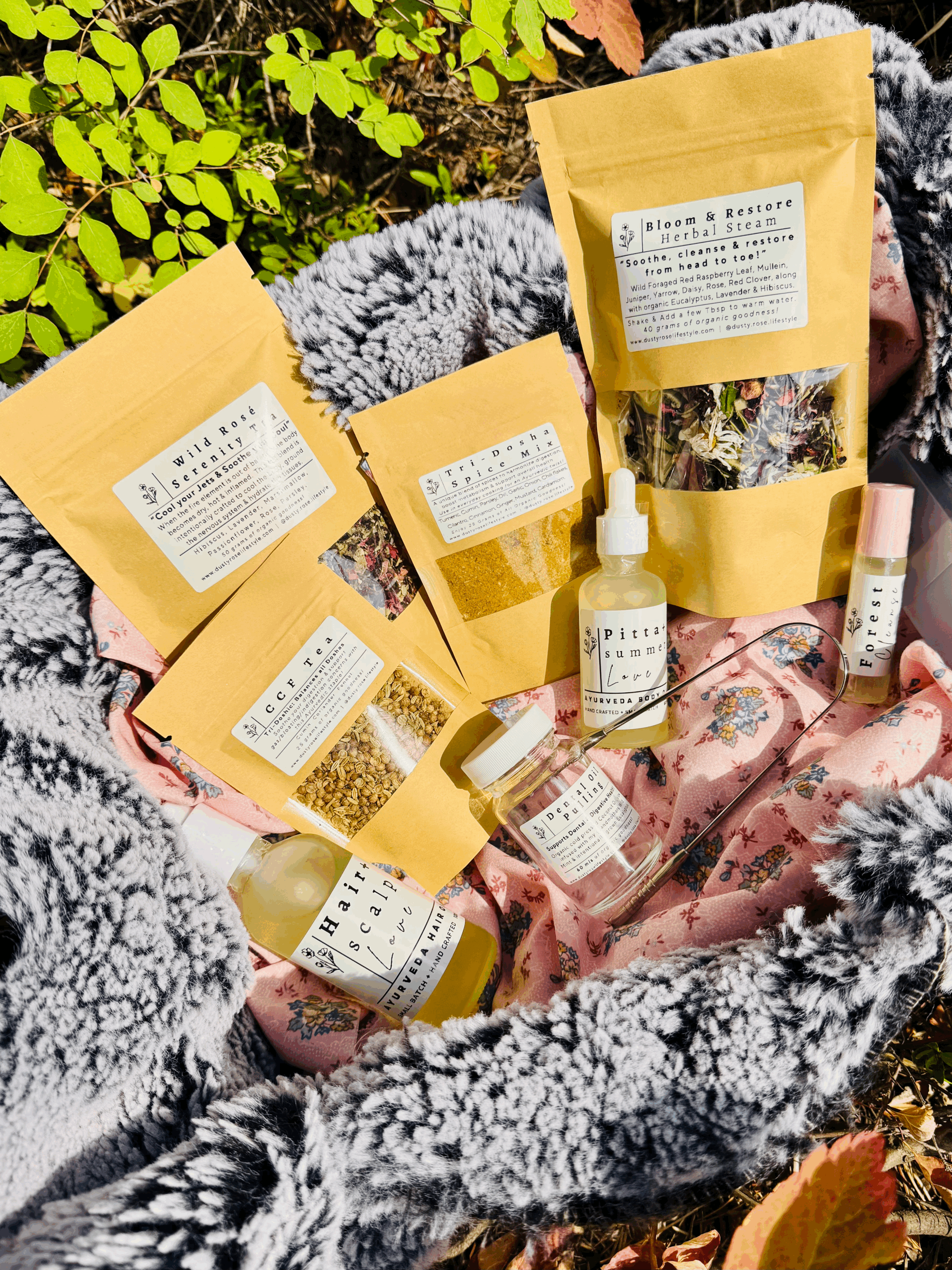 My Arnica Balm is a handcrafted, small-batch blend of wild-foraged Rocky Mountain arnica flowers, sun-dried and infused in organic olive oil and beeswax, with a touch of chamomile and eucalyptus essential oils. Apply intentionally to soothe overworked muscles, tired joints, or areas of inflammation — a delicate rub that combines botanical power with mindful care.
